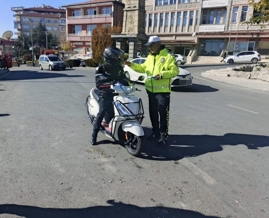 Bor’da motosiklet sürücülerine yönelik olarak yapılan bilgilendirme faaliyetinde konuyla ilgili broşürler de dağıtıldı.